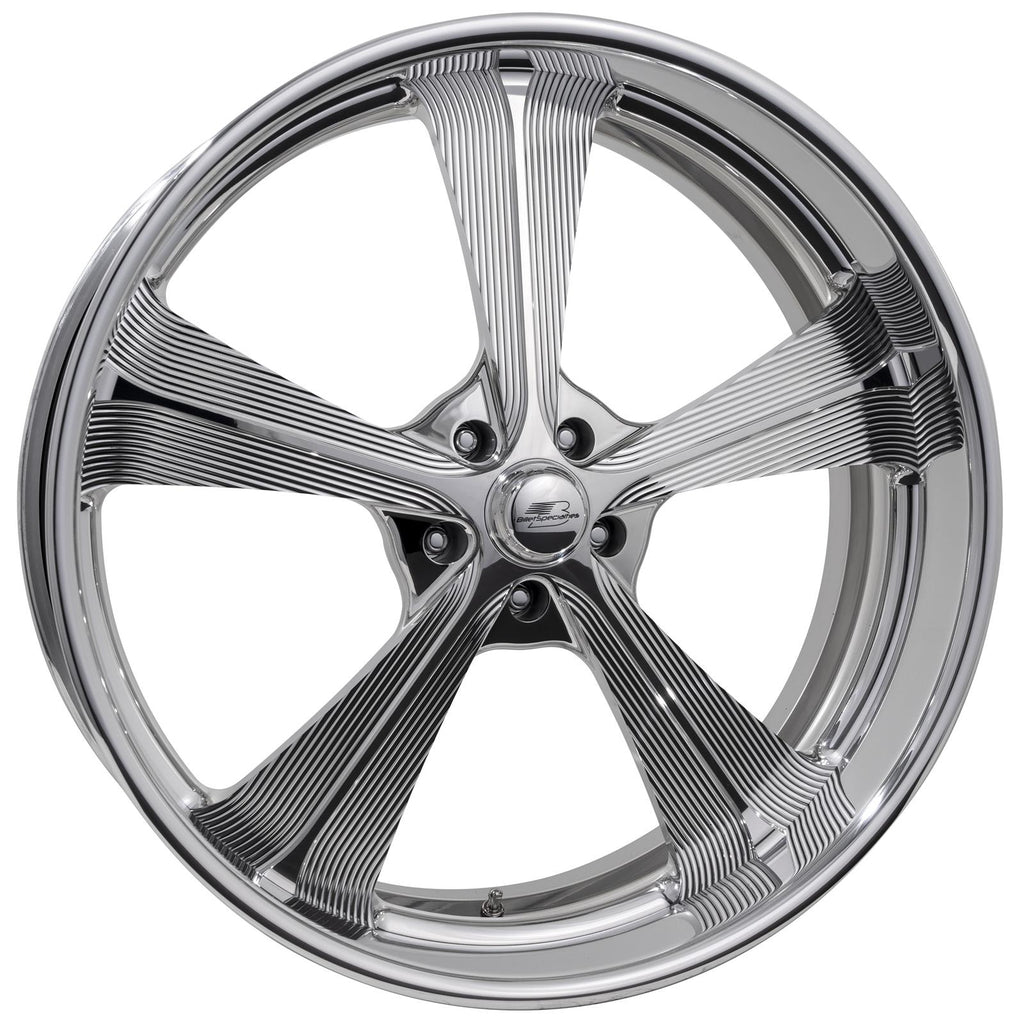 Billet Specialties SLG Series SLG53 Talladega polished custom order wheels offer everything you would expect from a forged aluminum wheel—strength, style, and performance. A grooved 5-spoke retro design with soft lip provides a striking long leg effect that delivers maximum visual impact as you roll up. Custom built to your specs and ready for big brakes, the SLG Series can enhance the highest tech hot rod or muscle car.
