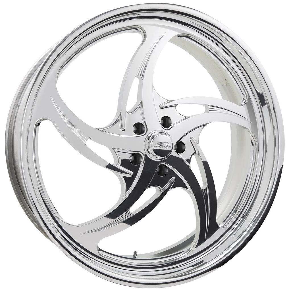 Straightforward style—each wheel in the Billet Specialties SLG Series is a radical departure from the next. These SLG85 Hurricane custom order wheels feature five sweeping spokes with interior windows and art deco accents; a center hub designed for recessed lugs, and a highly polished finish. The 2-piece forged aluminum true directional rims are available in a variety of widths, diameters, and other fitment options for front and rear. Hurricane wheels will add cutting-edge flair to your hot rod or muscle car—a contemporary blend of style, strength, and performance!