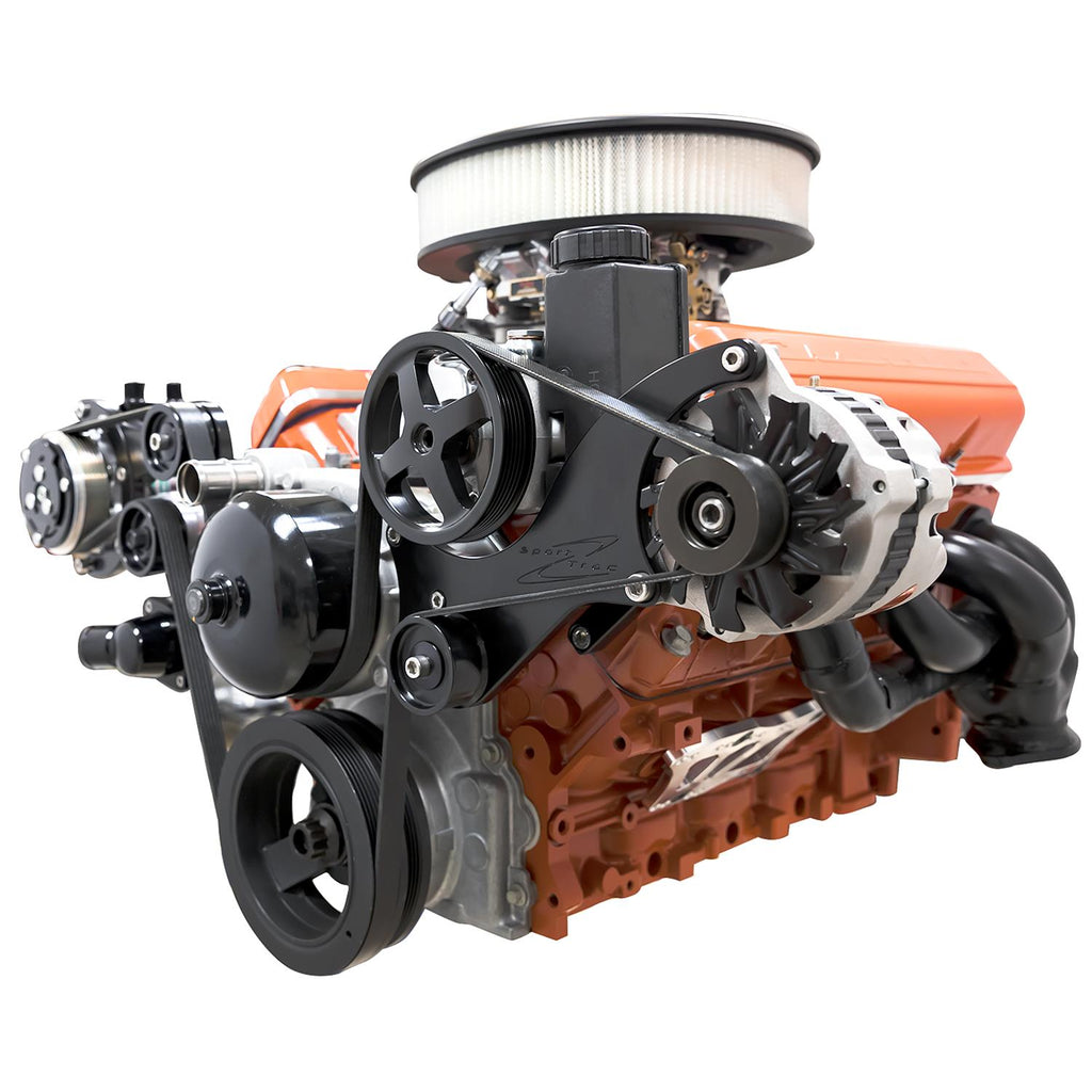 Billet Specialties Sport Trac serpentine systems bring value, style, and quality to your engine compartment. Sport Trac systems feature precision-machined brackets for flex-free operation, laser-straight belt alignment, and ease of installation. Each of the Billet Specialties brackets are finished in satin black powdercoat for a classic look, while the pulleys are hardcoat black anodized for durability, plus quality stainless hardware is used throughout for superior corrosion protection. Starting off with a strong foundation ensures quality; Billet Specialties Sport Trac serpentine systems are completed with the best components for reliability and long life.