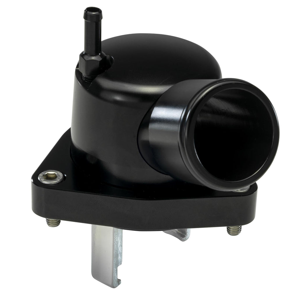 Billet Specialties thermostat housings not only look good, but they also get rid of leaky paper gaskets thanks to their O-ring seal design. You can choose the conventional vertical housing or the high-tech 360 degree swivel housing. They're available straight-up or with a 0, 15, or 45 degree angle and come complete with stainless hardware.Brand: Billet Specialties