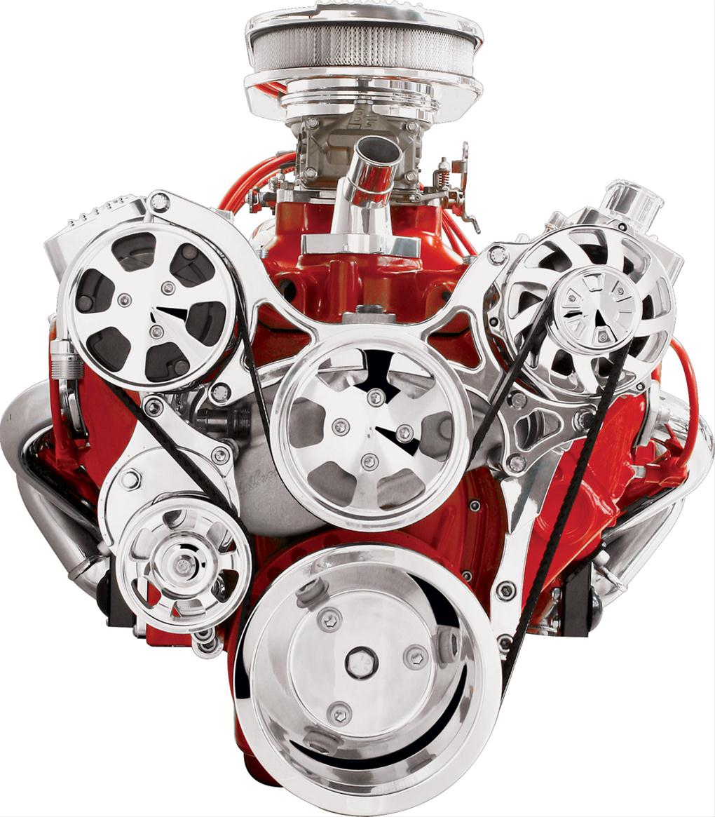 Billet Specialties Tru Trac serpentine systems with A/C feature easy, straightforward assembly—with no spacers or washers to fool with. The entire Tru Trac systems are designed to mount to the engine block to allow for any cylinder head/intake configuration. All hardware and fasteners are included in each kit to complete the install.
