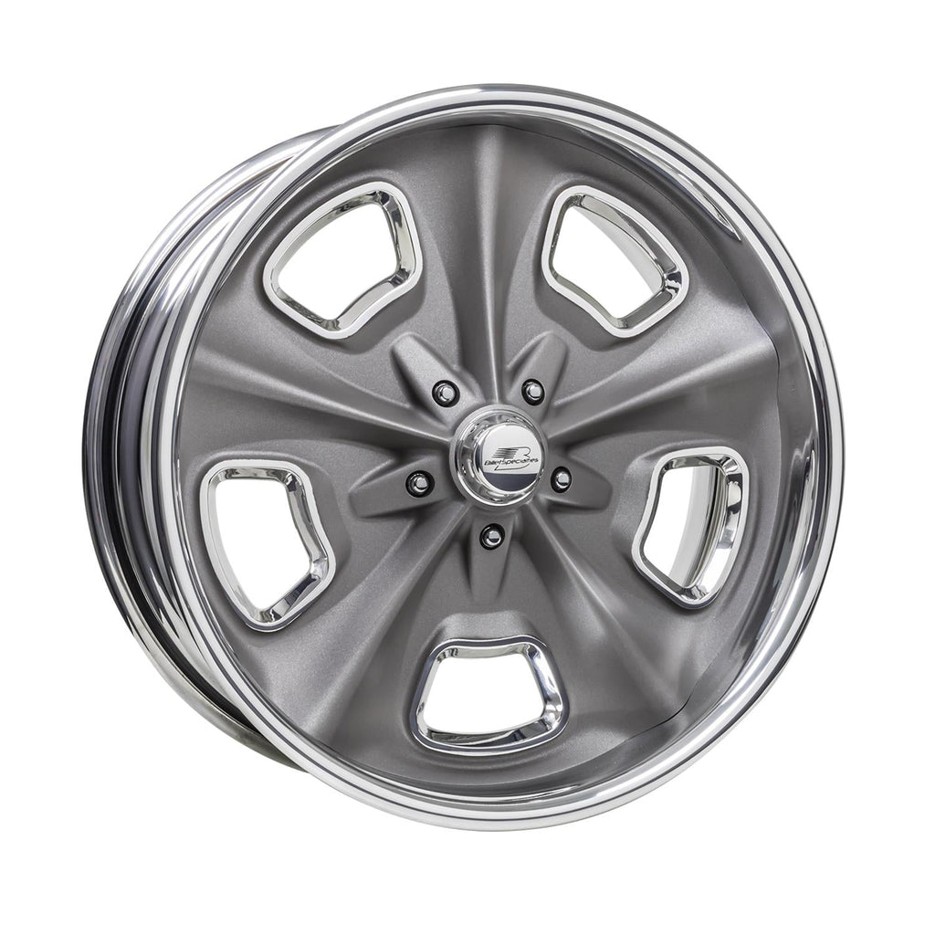 Billet Specialties Vintage Series Crossover Extreme profile gray custom order wheels reset the bar in hot rod wheel design. Wheels that have defined hot rodding through the years are mixed with new styles that look like they've always been there. These nostalgic rims are forged from 6061-T6 aluminum, precision-machined with multi-axis technology, and hand-finished. Crossover wheels feature five dimensional spokes and alternating oblong windows, raised accents, and a center hub designed for exposed lugs. They're available in a variety of finishes and sizes for both the front and rear of your vehicle. A flashy blend of retro/modern style, strength, and performance!