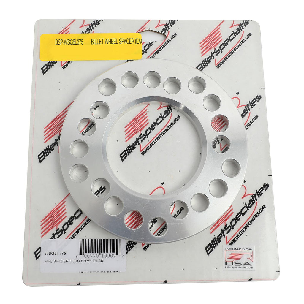 Billet Specialties wheel spacers are precision-machined from 6061-T6 billet aluminum to ensure trueness, quality, and strength. They are available in different thicknesses, so you can give your wheels more room and choose the look that you want for your vehicle. Get more brake caliper clearance or eliminate fender gap with a set of Billet Specialties wheel spacers.Brand: Billet Specialties