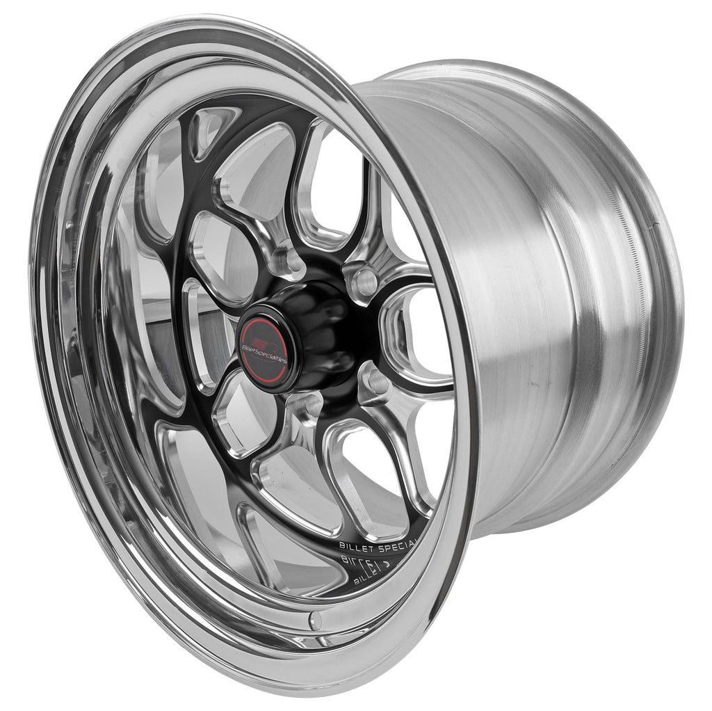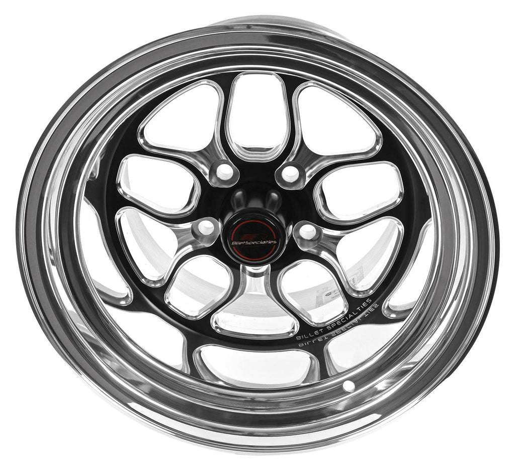 Spun aluminum rims add beauty and toughness to these 2-piece, SFI 15.1 certified 15 in. wheels and SAE J-2530 certified 17 in. units. Black anodized and machined centers look impeccable, along with the outer rims. Billet Specialties Win Lite black anodized wheels are built with top-notch materials and workmanship.Brand: Billet Specialties