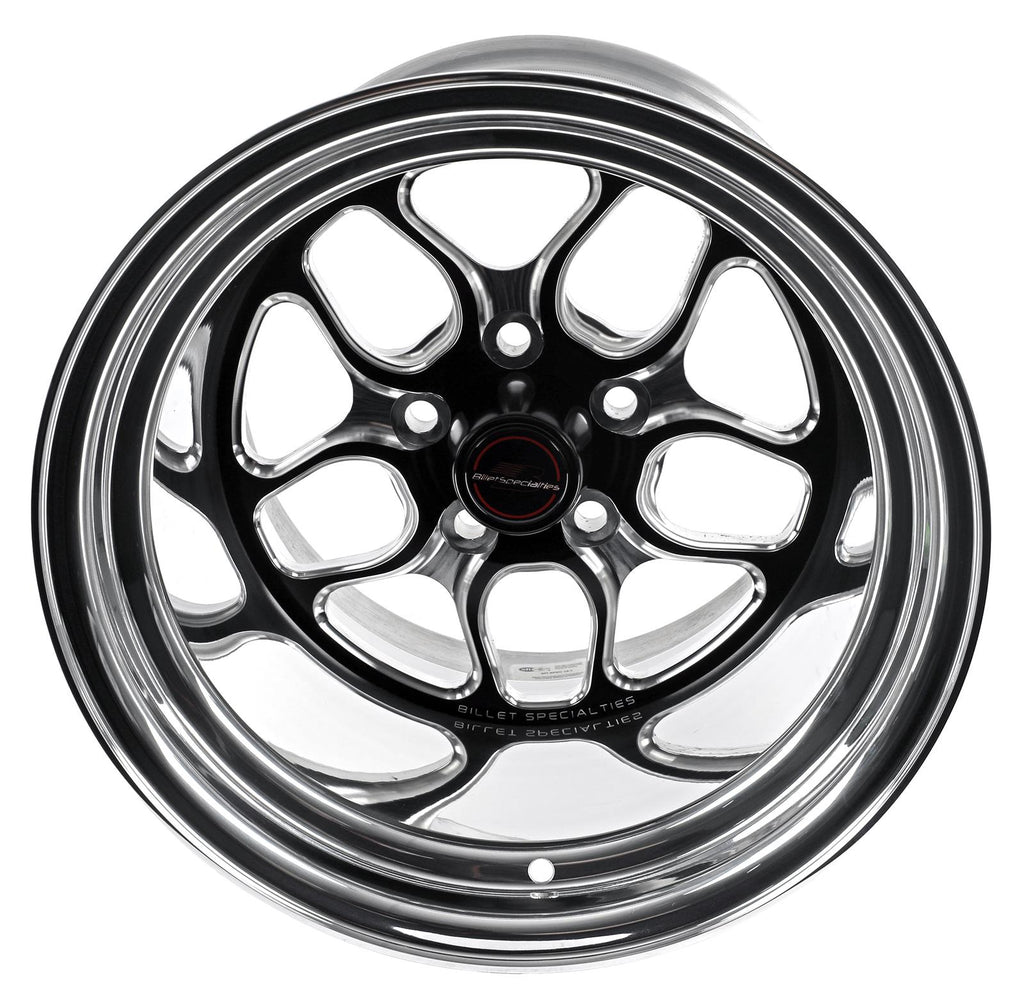 Spun aluminum rims add beauty and toughness to these 2-piece, SFI 15.1 certified 15 in. wheels and SAE J-2530 certified 17 in. units. Black anodized and machined centers look impeccable, along with the outer rims. Billet Specialties Win Lite black anodized wheels are built with top-notch materials and workmanship.Brand: Billet Specialties