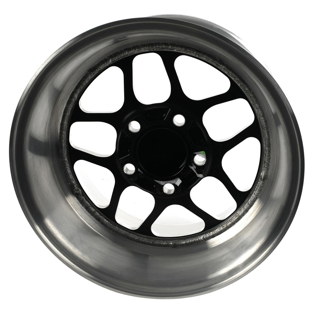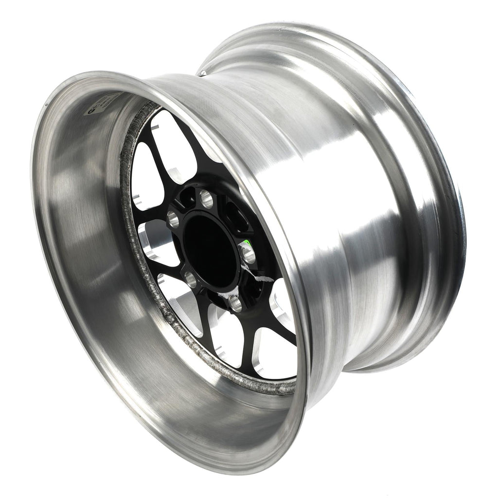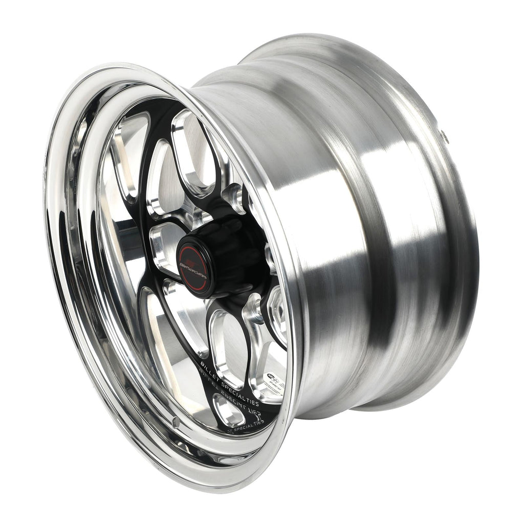 Spun aluminum rims add beauty and toughness to these 2-piece, SFI 15.1 certified 15 in. wheels and SAE J-2530 certified 17 in. units. Black anodized and machined centers look impeccable, along with the outer rims. Billet Specialties Win Lite black anodized wheels are built with top-notch materials and workmanship.