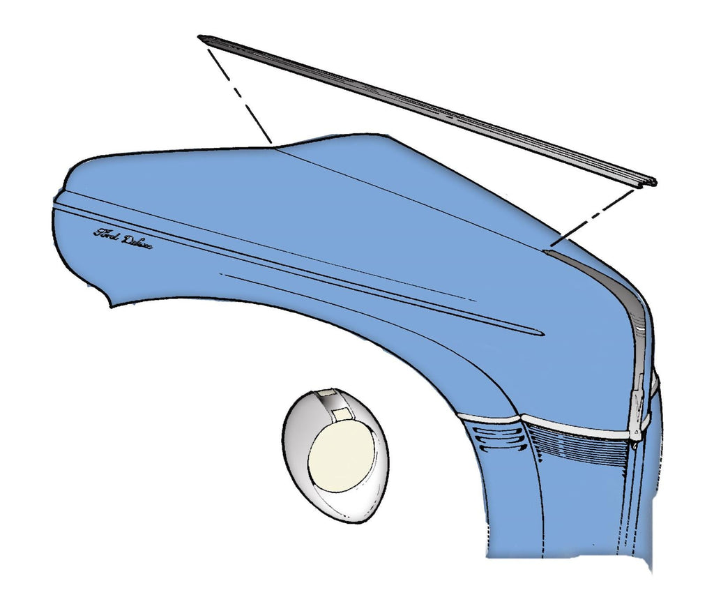 Bob Drake offers center hood trim for a variety of 1940s era Ford cars and trucks. These beautiful reproductions are roll-formed from stainless steel with a polished finish. They slide over the rear of the hood ornament and finish in a perfect point at the back of the hood. Depending on your model, the moldings could be smooth or ribbed, just like the originals.Brand: Bob Drake Reproductions