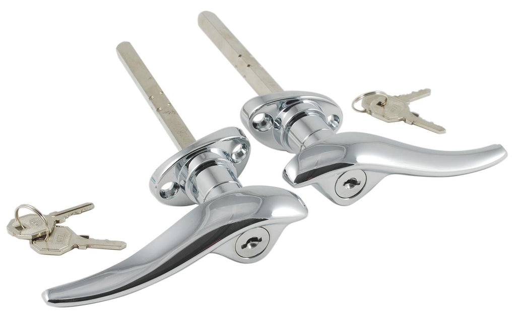 Bob Drake offers exterior door handles for a variety of 1930s and '40s Ford vehicles. These replacements are beautifully chrome plated diecast metal with superb detail. They're available in multiple designs, and all handles come with shafts. Order the model recommended for your application.Brand: Bob Drake Reproductions