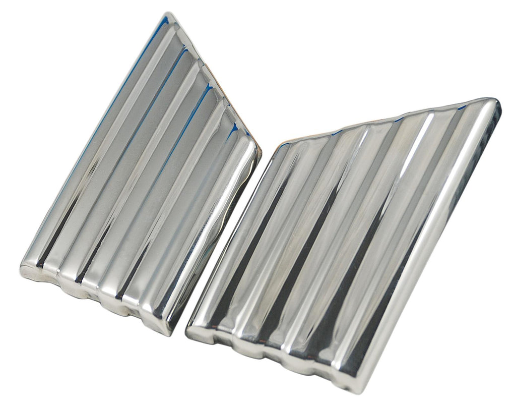 Bob Drake offers taillight housing trim for a variety of Ford cars from the 1940s. These are the small stainless steel trim pieces that fit on the taillight housing—difficult to find, until now! Order a pair for your vintage vehicle.Brand: Bob Drake Reproductions