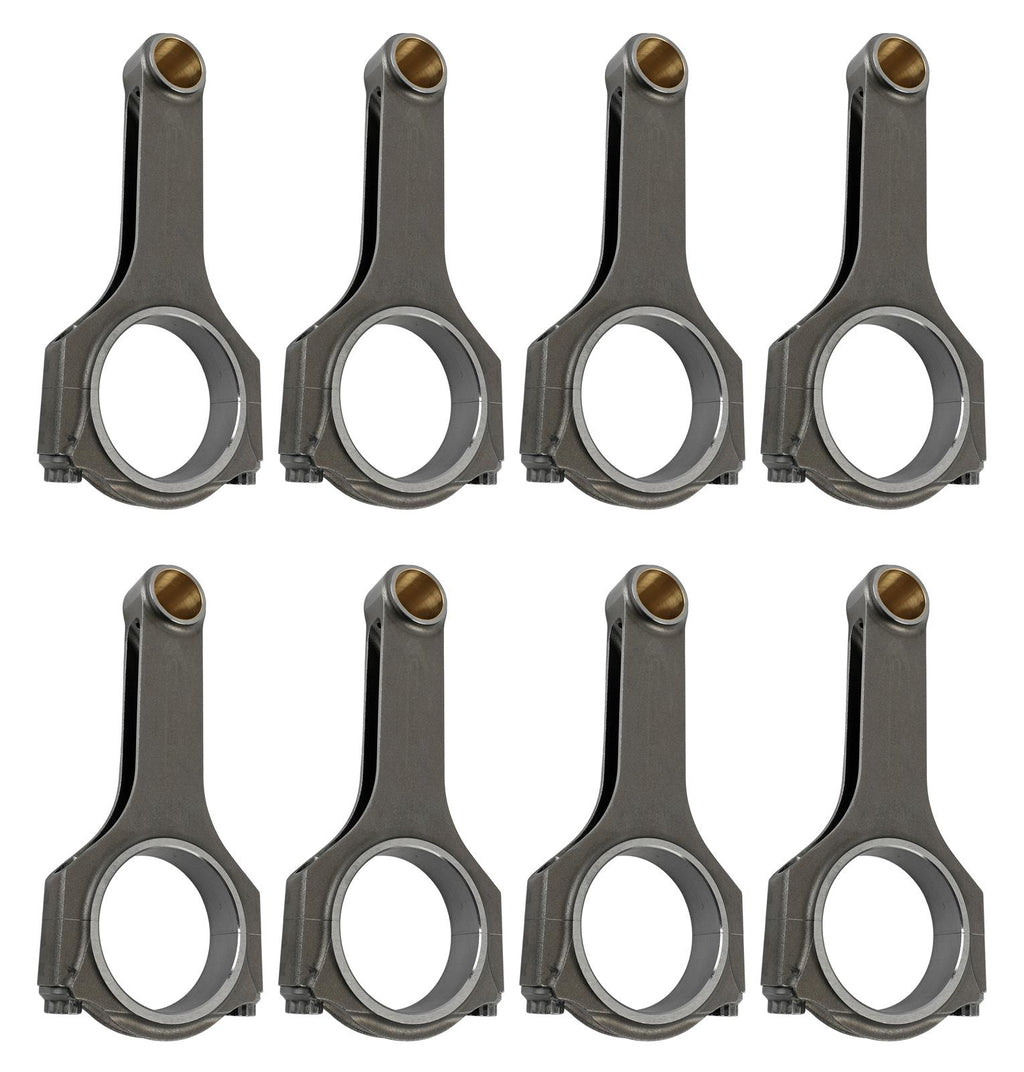 Better by design, Callies Compstar connecting rods offer high performance and a trouble-free engine build. Concerns about out-of-round, big-end bore sizing, repeatability, time-saving details, and upgrade costs are a thing of the past. Their forged 4340 steel rods are put through a lengthy stress-relief process and burnishing of threads and bolt spot faces to ensure dimensional repeatability, no matter how many times rods are torn down and reassembled. Pin bushings are chamfered and honed, parting line edges are generously chamfered, and bearing locating tab slots are deburred, all in an effort to save you time and trouble. ARP 2000 bolts and stroker clearances are standard with Compstar rods. Choose either their original H-beam design or heavy-duty I-beam designed rods. For high performance use right out of the box, plus value and peace of mind, try Callies Compstar connecting rods.Brand: Callies Performance