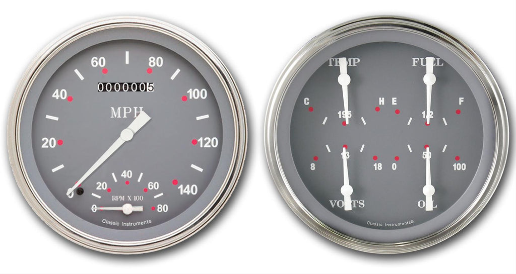 Classic Instruments 1947-53 pickup package gauge sets add beautiful modern styling and gauge accuracy to your Advance Design Chevy truck! These kits come complete with your choice of a speedometer or Speedtachular (a speedometer with a built-in tachometer), along with a water temperature/voltage/fuel level/oil pressure quad gauge. Classic Instruments 1947-53 pickup package gauge sets are offered with a variety of gauge face options to best complement your truck's style. Sending units, bezels, and all necessary installation hardware are included.Brand: Classic Instruments