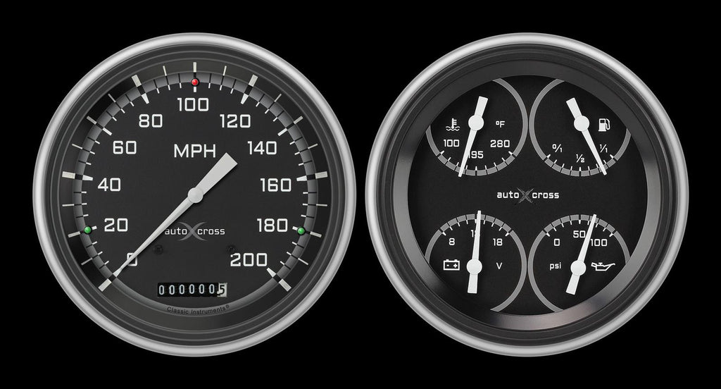 Classic Instruments 1951-53 Chevy Packages are designed exclusively to fit into the stock pod cluster, gracing your iconic ride with authentic looks and modern precision! Packages are offered with curved or flat glass in their Hot Rod Series for a timeless black and white look; their White Hot Series with gleaming easy-to-read white faces and black pool cue pointers; and in antique tan or bold gray with bright red pointers—all with stainless steel bezels. The Classic 1951-53 Chevy Packages include color-coded wiring harnesses and sending units for speedometer, temperature, and oil pressure gauges. Fuel gauges will operate with a stock (0-30 ohms) fuel sender, available separately.Brand: Classic Instruments