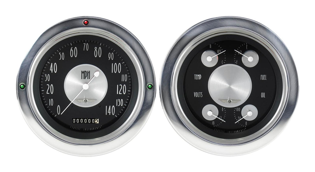 Classic Instruments 1954-55 pickup package gauge sets add beautiful modern styling and gauge accuracy to your Chevy truck! These kits come complete with your choice of a speedometer or Speedtachular (a speedometer with a built-in tachometer), along with a water temperature/voltage/fuel level/oil pressure quad gauge. Classic Instruments 1954-55 pickup package gauge sets are offered with a variety of gauge face options to best complement your truck's style. Sending units, bezels, and all necessary installation hardware are included,