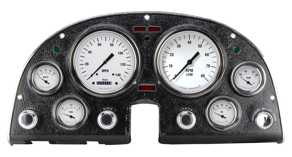 Classic Instruments 1963-67 Corvette package gauge sets will give your vintage interior that special "wow." Handcrafted in America, these packaged clusters include a speedometer, tachometer, and four individual gauges. So, whether you prefer the nostalgic appeal of their All American Series, the hot look of their Classic White, or the standout racy look of their Red Steelie gauges, Classic Instruments will dress your Corvette beautifully with a precision 1963-67 package gauge set.Brand: Classic Instruments