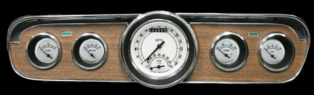 Classic Instruments 1965-66 Mustang package gauge sets deliver timeless authenticity to your resto dashboard. These analog dials are offered in a wide range of vintage muscle car era styles. The myriad options for numerals, colors, and indicators all replicate the original instrumentation found in legendary Ford pony cars. Most cluster kits include a speedometer and smaller gauges for fuel, oil, temp, and volt; some models also feature a tachometer. Classic packages furnish the necessary sending units, high beam indicator, turn signal bulbs—and a mounting bracket designed to work with your existing stock panel/bezel. (If you prefer a new reproduction panel/bezel to frame your gauges, click on the Suggested Parts tab for choices.)Brand: Classic Instruments