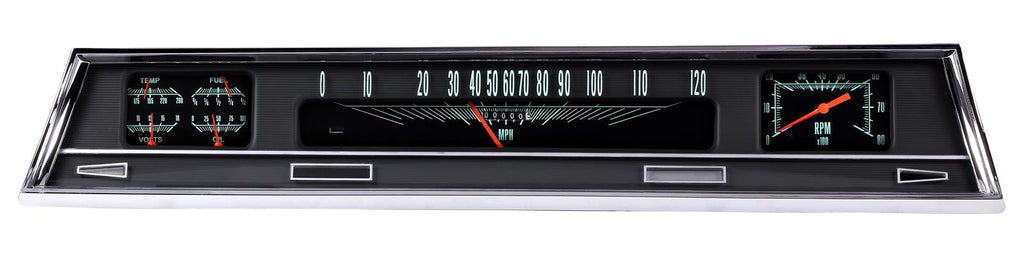 These gauge sets feature Classic's ZST and will work directly with ECM or VSS signals, requiring no additional control boxes. The cluster is designed to reuse the stock fuel sending unit or any aftermarket fuel sender (purchased separately) with the built-in ohm range selector switch. The gauges are offered in several color schemes. So freshen up your stock look with a new 1966-67 Chevelle instrument panel. (This cluster also fits 1966-67 El Caminos.)