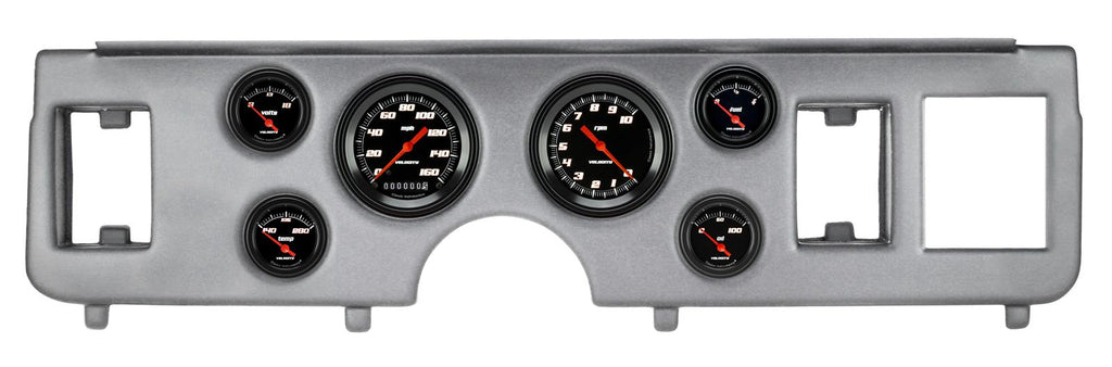 Classic Instruments offers 1979-86 Ford Mustang Package gauge sets in a variety of colorful series—White Hot, Velocity (White or Black), Hot Rod, G-Stock, G-Sport, and AutoCross (Yellow or Gray). These molded cluster panels from Classic Dash accept 3 3/8 in. speedometer and tachometer; and 2 1/8 in. fuel, oil, volt, and temp instruments. Speedometer and tachometer include Classic Instruments ZST for ease of calibration, and the ability to read pulse generator, vehicle speed sensor, or ECM signals. Kits are available with short-sweep or full-sweep small gauges, as well as a selection of face, number, pointer, and bezel color options. The ABS plastic gauge panels are offered in black, brushed aluminum, or carbon fiber finishes. Update your muscle car interior with an impressive new gauge cluster dash from Classic Instruments!