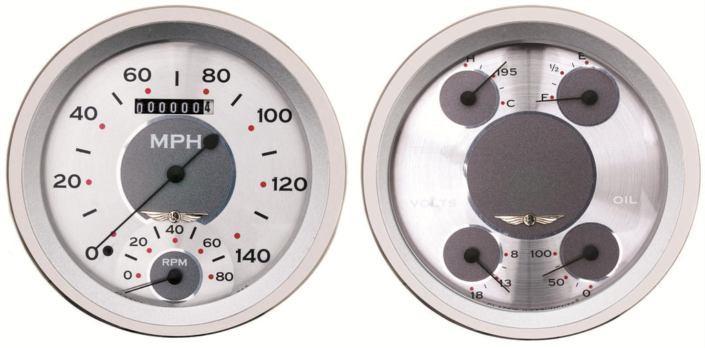 Beautiful designs from Tom Gale grace Classic Instruments All-American Series gauge sets and feature spun metal, curved glass, sleek pointers, polished stainless bezels, and a winged logo to illuminate your dash. Classic Instruments hand-assembles, inspects, re-inspects, calibrates, and tests every gauge before packaging and shipping them to ensure the perfection you're expecting. Sets are available in many gauge combinations and sizes. Complement your classic with the fine details of All-American Series gauge sets.Brand: Classic Instruments