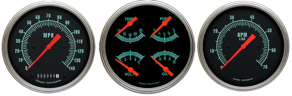 Classic Instruments G-Stock Series gauge sets offer the great look of American muscle car performance! What a time! Gas was cheap and the need for speed was ruled by American muscle machines. Classic Instruments G-Stock Series gauge sets illuminate your dash with the powerful style of black backgrounds, green numerals, red pool cue pointers, polished bezels, and your choice of curved or flat lenses. Many different sets are available, from classic 5 or 6-gauge sets to those with dual or quad gauges. Finish your ride with a touch of one of the best eras in automotive history--add G-Stock Series gauge sets from Classic Instruments.