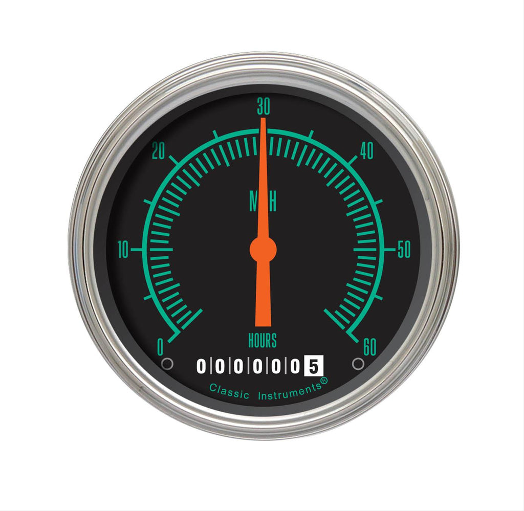 Classic Instruments G-Stock Series speedometers will give your ride that great look of American muscle car performance. They feature a chrome outer ring and a black background with that well-known orange needle and that light teal number indicator. If you have a classic muscle car you're restoring, Classic Instruments G-Stock Series speedometers are exactly what you need.Brand: Classic Instruments