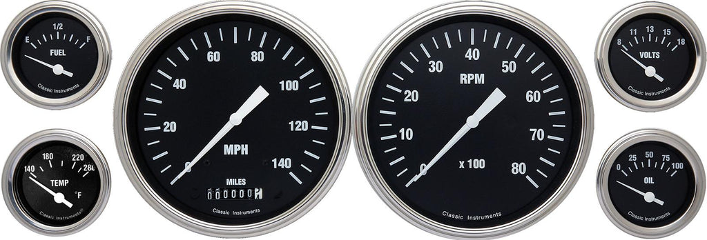 Classic Instruments Hot Rod Series gauge sets give tradition a fresh new look! Classic brings back the memories with their Hot Rod Series, a tribute to the early days of street rodding. They offer black and white, easy-to-read pool cue pointers and gleaming bezels--nothing fancy, just straightforward and clean. These precision gauge sets are available in many different prepackaged kits for you to choose from, including those with Classic's Duals and Quads. So, cuff your jeans, slick back your hair, and get ready to pick up your favorite sweater girl in your nostalgic street rod, complete with American-made Hot Rod Series gauges from Classic Instruments--the perfect finishing touch to your dash.