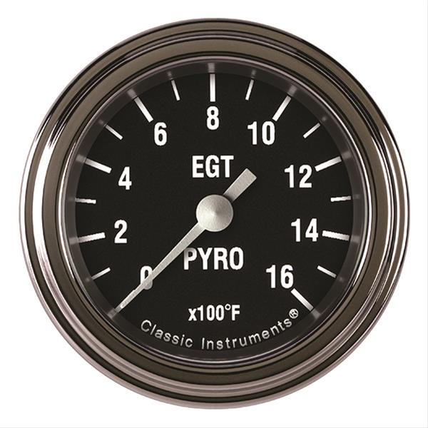 Notes: Low-step style bezel with flat lens. Features thermocouple amplifier, LED lighting, analog 0.5-4.5V DC output for data logging, push-button calibration, and rugged air core movement with microprocessor technology. Gauge has integrated red warning light, illuminates entire gauge when activated. Includes Type K thermocouple, with 3/16 in. diameter probe, 1/8 in. compression fitting, bung, and 10 ft. stainless steel braided wire.