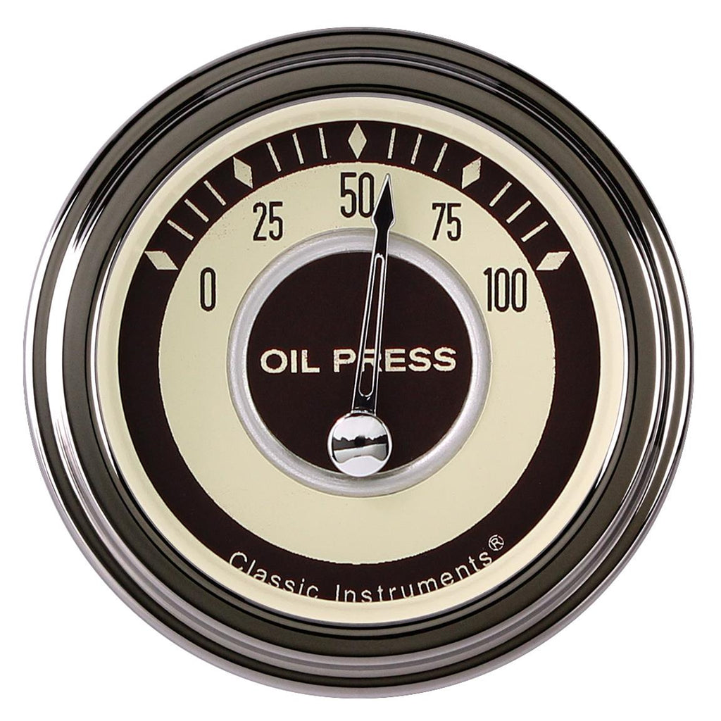 Classic Instruments Nostalgia VT Series gauges feature a raised accent ring in the center that's complemented with a chrome V8 Speedster pointer. They include diamond indices that give them a rich, classic feel and their color combination gives them a nostalgic, "golden-age" finish. Only Classic Instruments can bring you the class and elegance in gauges that you want and deserve with Nostalgia VT Series gauges.Brand: Classic Instruments