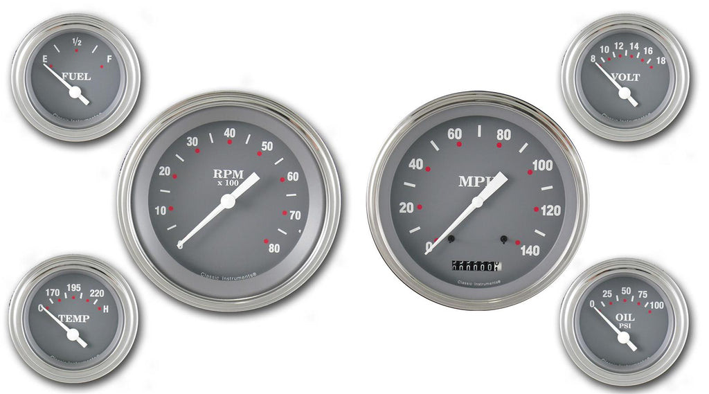 Go gray and go bold with Classic Instruments SG Series gauge sets. Classic SG Series gauges sport a popular gray face and white pointer design for a clean graphic layout that's sure to make a statement on any dash. These hand-assembled, inspected, tested, and re-inspected gauges are available in numerous combinations to suit your application, including sets with Classic Dual and Quad gauges. Classic Instruments SG Series gauge sets are simply gray and simply perfect.Brand: Classic Instruments