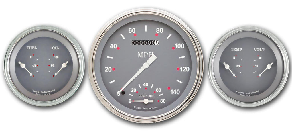 Go gray and go bold with Classic Instruments SG Series gauge sets. Classic SG Series gauges sport a popular gray face and white pointer design for a clean graphic layout that's sure to make a statement on any dash. These hand-assembled, inspected, tested, and re-inspected gauges are available in numerous combinations to suit your application, including sets with Classic Dual and Quad gauges. Classic Instruments SG Series gauge sets are simply gray and simply perfect.Brand: Classic Instruments