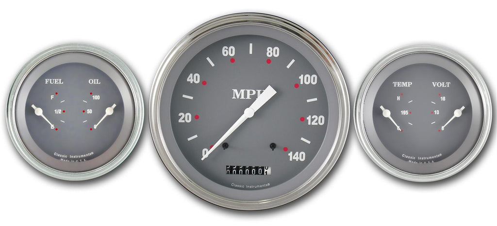 Go gray and go bold with Classic Instruments SG Series gauge sets. Classic SG Series gauges sport a popular gray face and white pointer design for a clean graphic layout that's sure to make a statement on any dash. These hand-assembled, inspected, tested, and re-inspected gauges are available in numerous combinations to suit your application, including sets with Classic Dual and Quad gauges. Classic Instruments SG Series gauge sets are simply gray and simply perfect.Brand: Classic Instruments