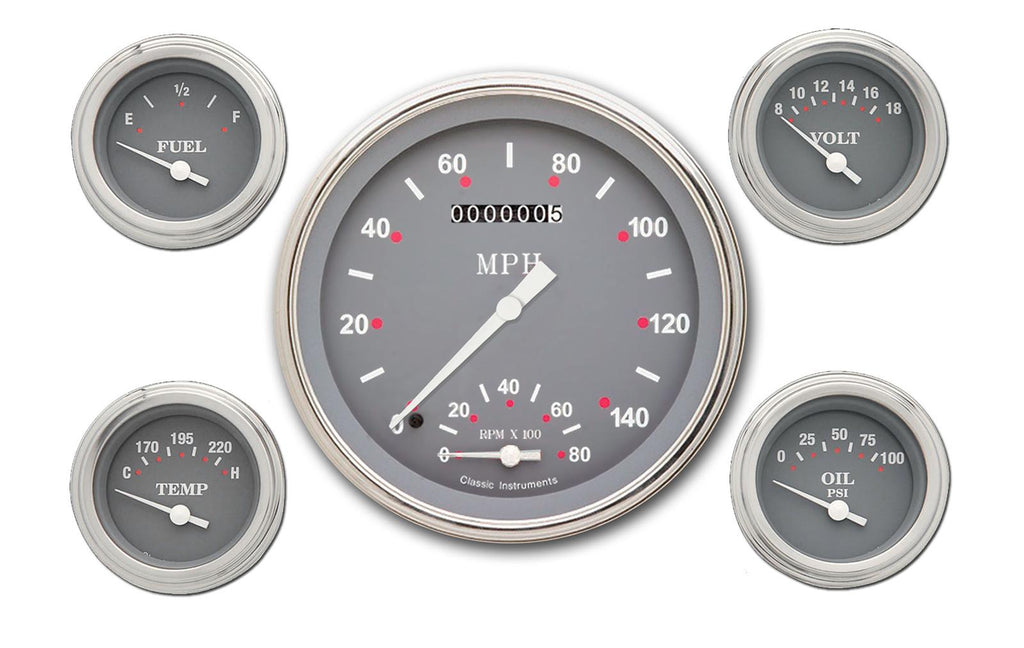 Go gray and go bold with Classic Instruments SG Series gauge sets. Classic SG Series gauges sport a popular gray face and white pointer design for a clean graphic layout that's sure to make a statement on any dash. These hand-assembled, inspected, tested, and re-inspected gauges are available in numerous combinations to suit your application, including sets with Classic Dual and Quad gauges. Classic Instruments SG Series gauge sets are simply gray and simply perfect.Brand: Classic Instruments