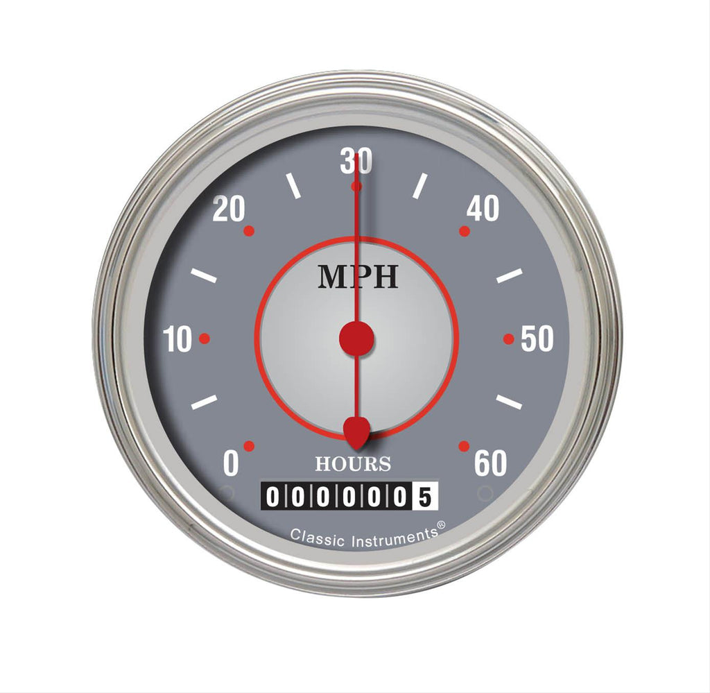 Classic Industries Silver Series speedometers add a bold, graphic look to complement today's high-tech interior designs. Classic's red teardrop pointers float over computer-machined, swirl-cut stainless centers in these unique instruments. Silver Series speedometers combine gray with red accents and stainless steel, flawlessly offering the perfect finishing touch. Clean with class can be yours with Classic Industries Silver Series speedometers in your dash.Brand: Classic Instruments