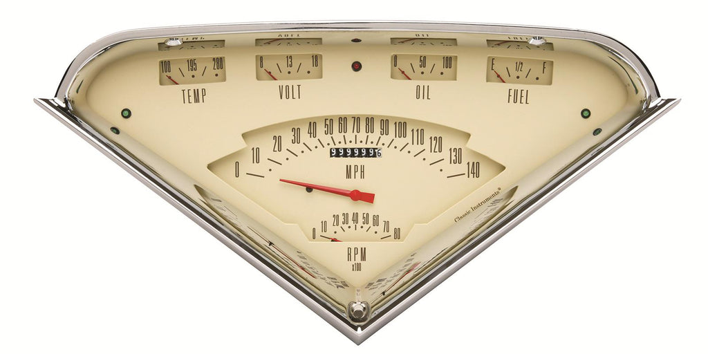 Your Task-Force Chevy deserves Tach-Force Package gauge sets from Classic Instruments. American-made quality and modern technology create an old look with new appeal for your 1955-59 Chevrolet Task-Force pickups, Suburbans, and panel trucks. Classic Tach-Force Package retrofit units have all that you expect--a 140 mph speedometer, a 0-30 ohm stock fuel gauge, turn signal and high-beam indicators, and oil, volt, and temperature gauges. Plus, Classic added a tachometer and LED lighting! These gauge clusters also feature a dual-layer design, 12 V electronic movements, and push-button calibration that's available in four colors. They come fully assembled and include all of the appropriate sending units. Give your Task-Force modern precision and authentic looks with the perfect touch from Classic Instruments--Tach-Force Package gauge sets.Brand: Classic Instruments
