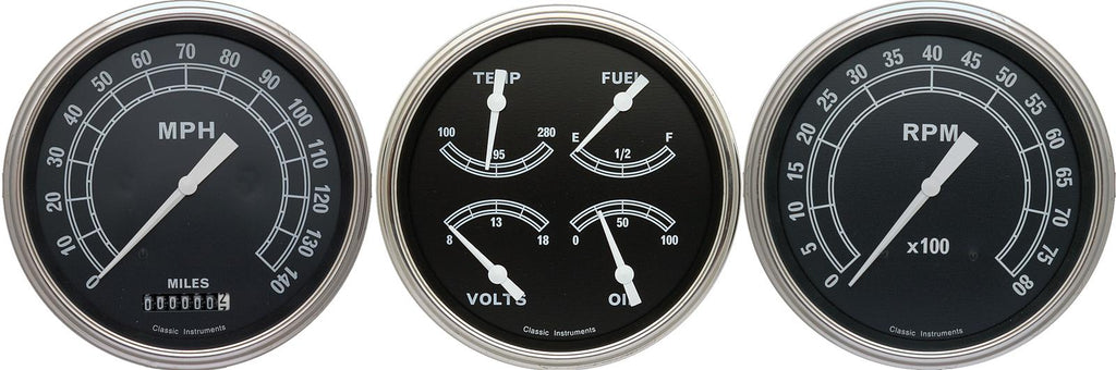 Cruise back in time with Traditional Series gauge sets from Classic Instruments. These gauges have black dial faces, polished stainless steel radial bezels, and white pointers. The gauges come standard with a special flat-glass lens, or a curved glass option for an authentic vintage look to reflect the simple, yet decorative styling of some of the great old-time classic cars. So, if you want to update your gauge cluster with modern instrumentation but want to keep an original vintage appearance, you can do it with Traditional Series gauge sets from Classic Instruments.Brand: Classic Instruments