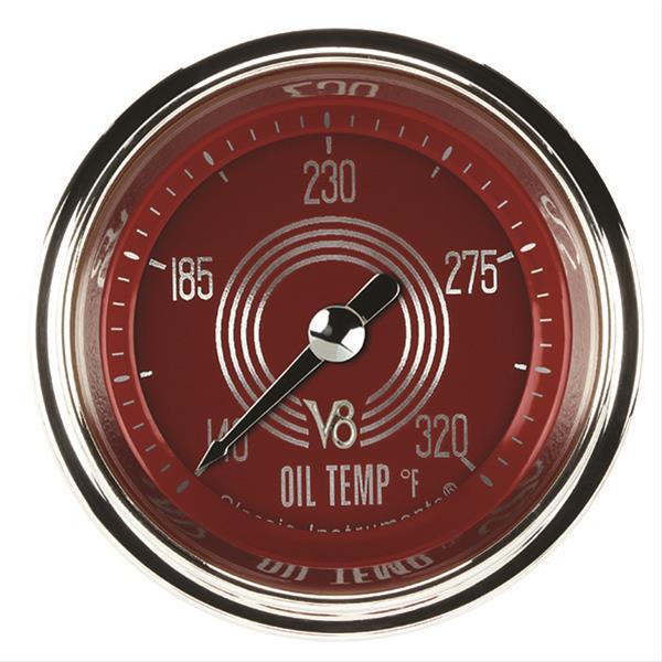 Step up the look of your hot rod or car with Classic Instruments V8 Red Steelie Series gauges. They feature a vivid red background with spun aluminum numbers and accent graphics that brightly bounce off of the red background. These gauges feature uniquely designed pointers for the V8 line, which is chrome plated and balanced for precision accuracy. Additional details within these instruments are laser-etched markings on the light diffuser ring, which adds a level of dimension and functionality. The etching corresponds with indices on the face and flows into a polished stainless high-step bezel that's crimped around an optic-grade curved lens to complete each of the gauges' overall design.Brand: Classic Instruments