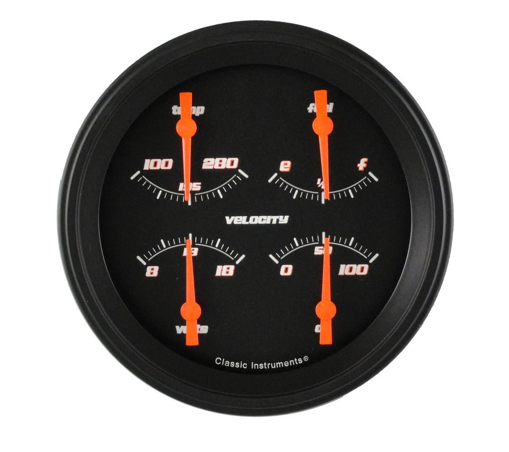 Classic Instruments Velocity Series gauge sets offer track-proven precision for your street machine, and they're engineered to handle the abuse of competition. With their big, easy-to-read numerals, non-reflective black bezels, metallic orange pointers, and your choice of black or white backgrounds, these gauges sets will send your dash racing with quality and innovation. The Velocity series gauge sets are handcrafted for perfection and include the necessary sending units for installation. Sets are offered in several combinations to fit your application. Gain a competitive edge at the track and on the street with Classic Instruments Velocity series gauge sets on board.