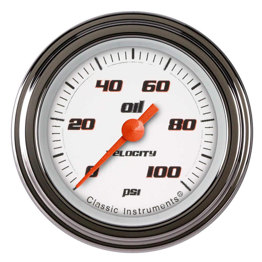 Pick up the pace with Classic Instruments Velocity Series gauges. They feature big, easy-to-read numerals; a variety of bezels, pointer styles and colors; full-sweep and short-sweep faces; and your choice of black or white backgrounds—all with track-proven precision. LED illumination provides superior visibility at night and the included wiring harness makes installation easy. Classic Velocity gauges offer street rod builders accuracy and reliability, but they're also engineered to take the abuse of competition. You can choose to outfit your vehicle from a wide range of gauges, including boost and amp gauges, transmission and oil temperature gauges, or even a clock.Brand: Classic Instruments