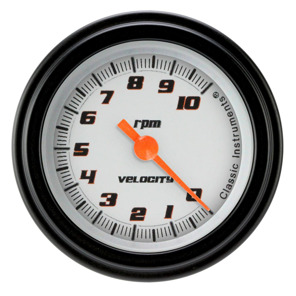 Pick up the pace with Classic Instruments Velocity Series tachometers. Big, easy-to-read numerals, non-reflective black bezels, metallic orange pointers, and your choice of black or white backgrounds send your dash racing with track-proven precision. Classic Velocity tachometers offer street rod builders accuracy and reliability, but they're also engineered to take the abuse of competition. Get an edge with the competitive advantage of Velocity Series tachometer from Classic Instruments.Brand: Classic Instruments
