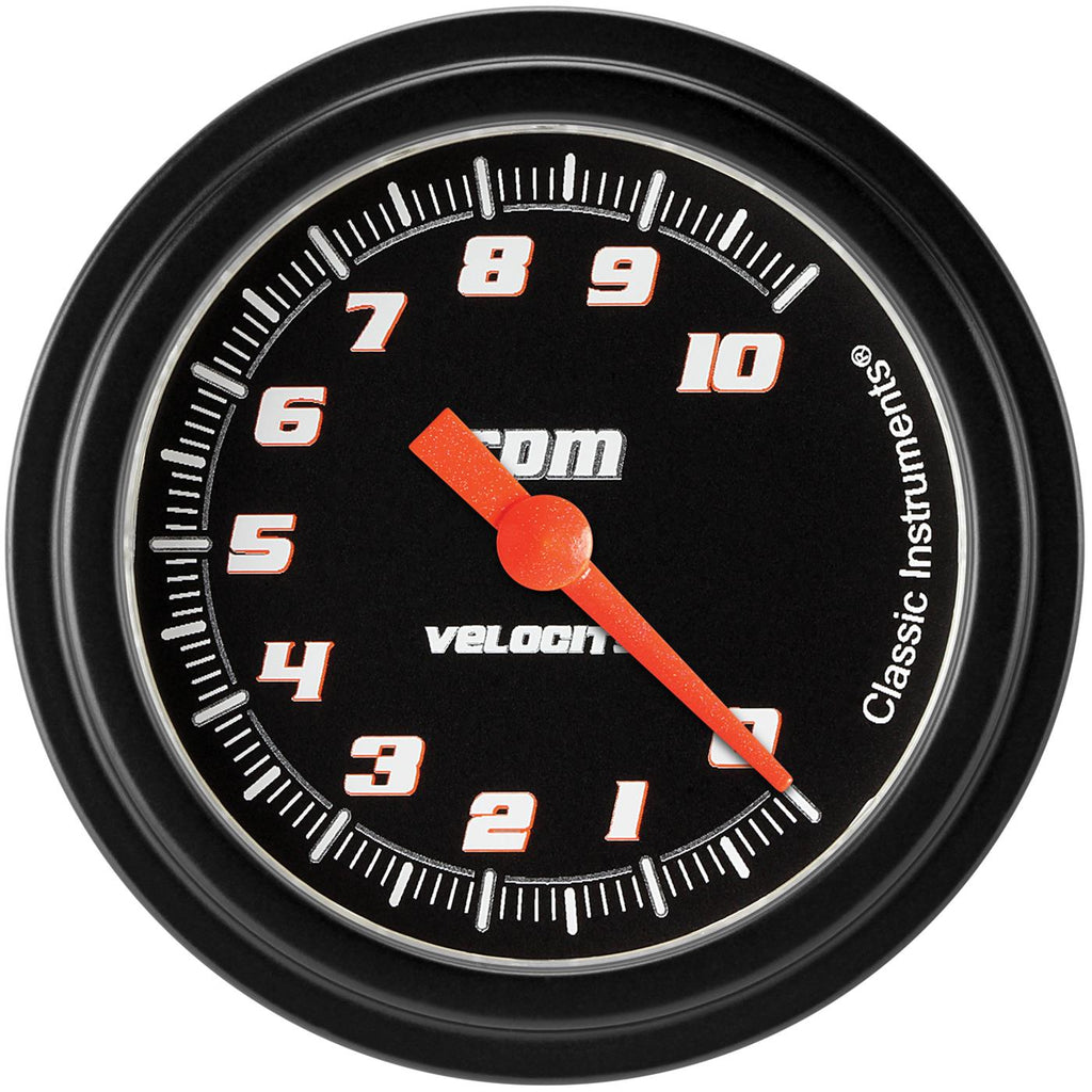 Pick up the pace with Classic Instruments Velocity Series tachometers. Big, easy-to-read numerals, non-reflective black bezels, metallic orange pointers, and your choice of black or white backgrounds send your dash racing with track-proven precision. Classic Velocity tachometers offer street rod builders accuracy and reliability, but they're also engineered to take the abuse of competition. Get an edge with the competitive advantage of Velocity Series tachometer from Classic Instruments.Brand: Classic Instruments