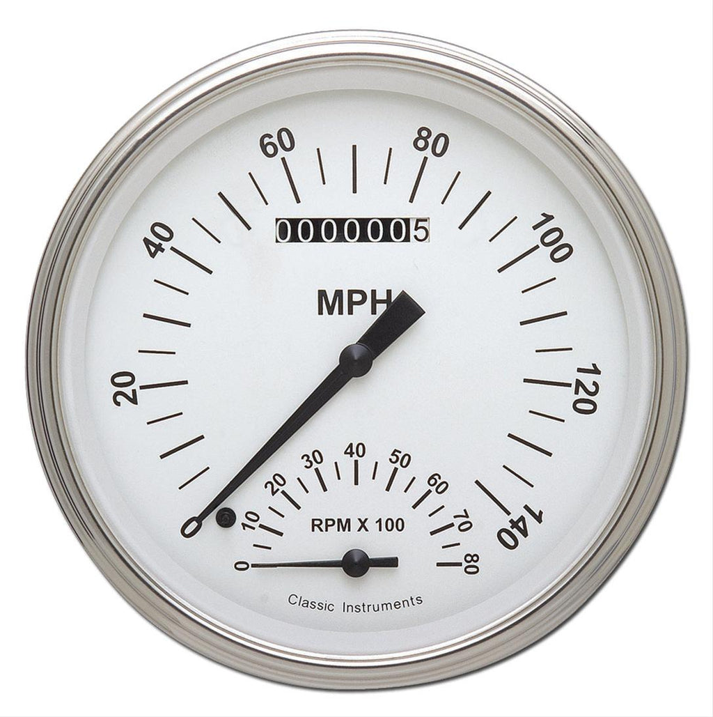 Classic Instruments White Hot Series gauge sets have a no-nonsense racing look that goes perfectly with any hot rod or custom classic. They feature a gleaming, easy-to-read white face dial and a surrounding chrome ring. If you're looking for sleek, yet aggressive gauges, then these Classic Instruments White Hot Series gauge sets are for you.