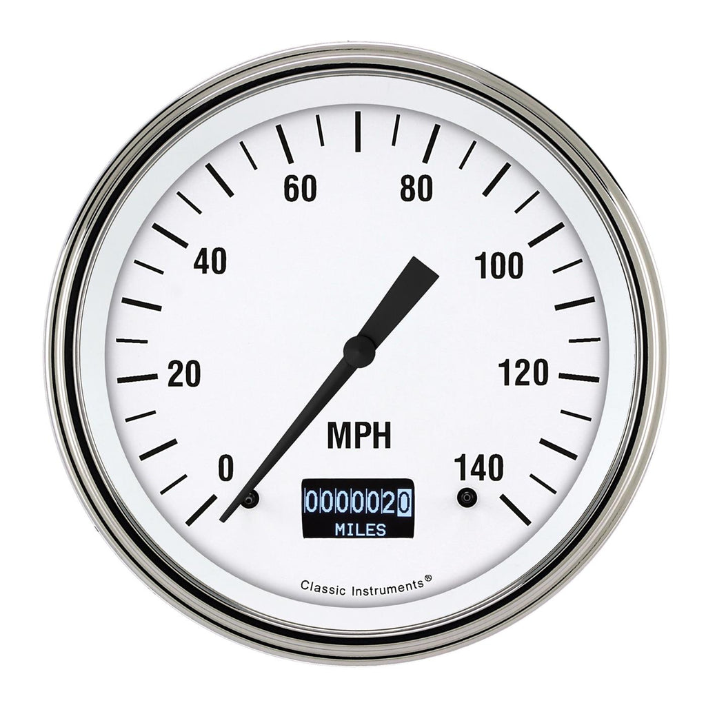 Classic Instruments makes "fast" look cool with their White Hot Series speedometers! Revitalizing the early days of street rodding, Classic's White Hot Series offers a fresh look and modern precision. Gleaming easy-to-read white dial faces with old-school pool cue pointers and shiny bezels offer no-nonsense charm that is straightforward and clean. And, they are easily adjusted to compensate for over-size rims, tires, or non-stock gearing. So, cuff your jeans and slick back your hair to cruise in your hot rod with the perfect finishing touch--White Hot Series speedometers from Classic Instruments.Brand: Classic Instruments