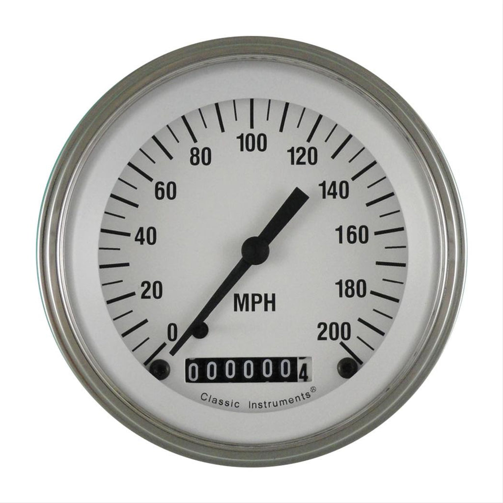 Classic Instruments makes "fast" look cool with their White Hot Series speedometers! Revitalizing the early days of street rodding, Classic's White Hot Series offers a fresh look and modern precision. Gleaming easy-to-read white dial faces with old-school pool cue pointers and shiny bezels offer no-nonsense charm that is straightforward and clean. And, they are easily adjusted to compensate for over-size rims, tires, or non-stock gearing. So, cuff your jeans and slick back your hair to cruise in your hot rod with the perfect finishing touch--White Hot Series speedometers from Classic Instruments.Brand: Classic Instruments