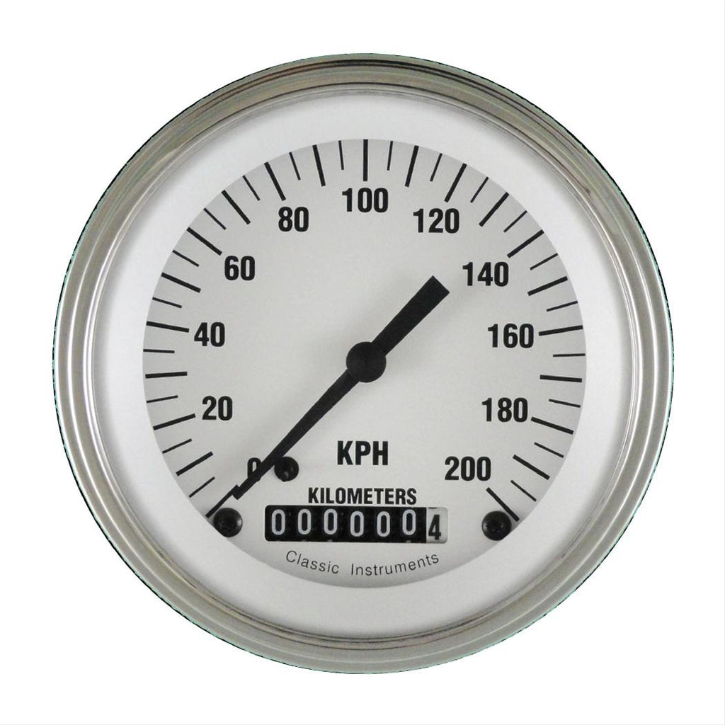 Classic Instruments makes "fast" look cool with their White Hot Series speedometers! Revitalizing the early days of street rodding, Classic's White Hot Series offers a fresh look and modern precision. Gleaming easy-to-read white dial faces with old-school pool cue pointers and shiny bezels offer no-nonsense charm that is straightforward and clean. And, they are easily adjusted to compensate for over-size rims, tires, or non-stock gearing. So, cuff your jeans and slick back your hair to cruise in your hot rod with the perfect finishing touch--White Hot Series speedometers from Classic Instruments.Brand: Classic Instruments