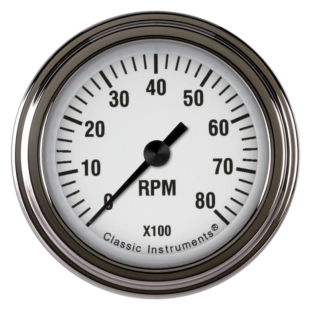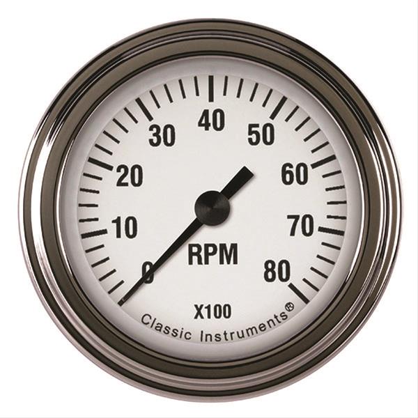 Classic Instruments White Hot Series tachometers have a no-nonsense racing look that goes perfectly with any hot rod or custom classic. They feature a gleaming, easy-to-read white face dial and a surrounding chrome ring. If you're looking for a sleek, yet aggressive gauge, then these Classic Instruments White Hot Series tachometers are for you.Brand: Classic Instruments