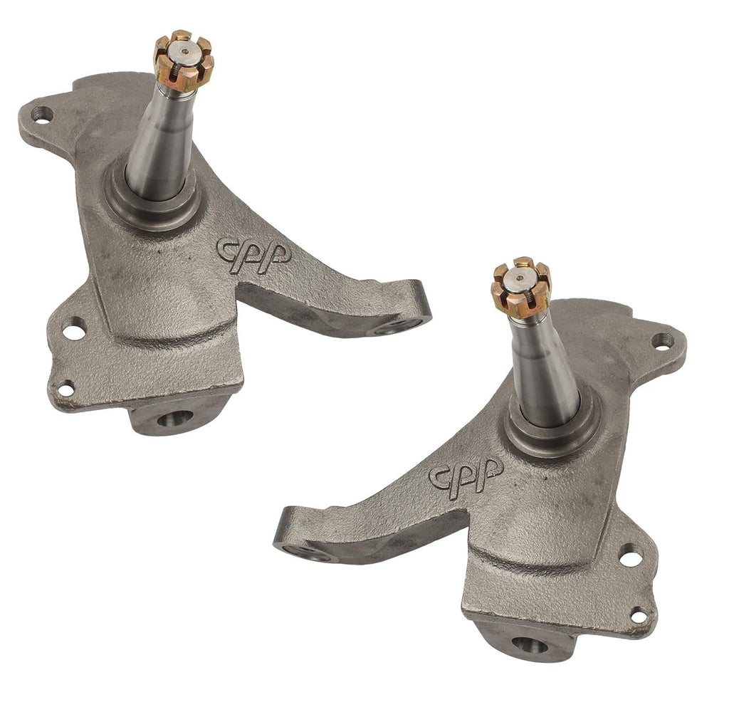 Classic Performance modular drop spindles are designed to help solve the tire to fender interference commonly found on lowered vehicles. The new specially designed spindle bracketry works with OEM brake components as well as aftermarket options. They install easily with no modifications and work with factory ball joints and tie rod ends. Classic Performance modular drop spindles offer adjustable steering stops and allow for an additional 1 1/8 in. more of fender to tire clearance.Brand: Classic Performance