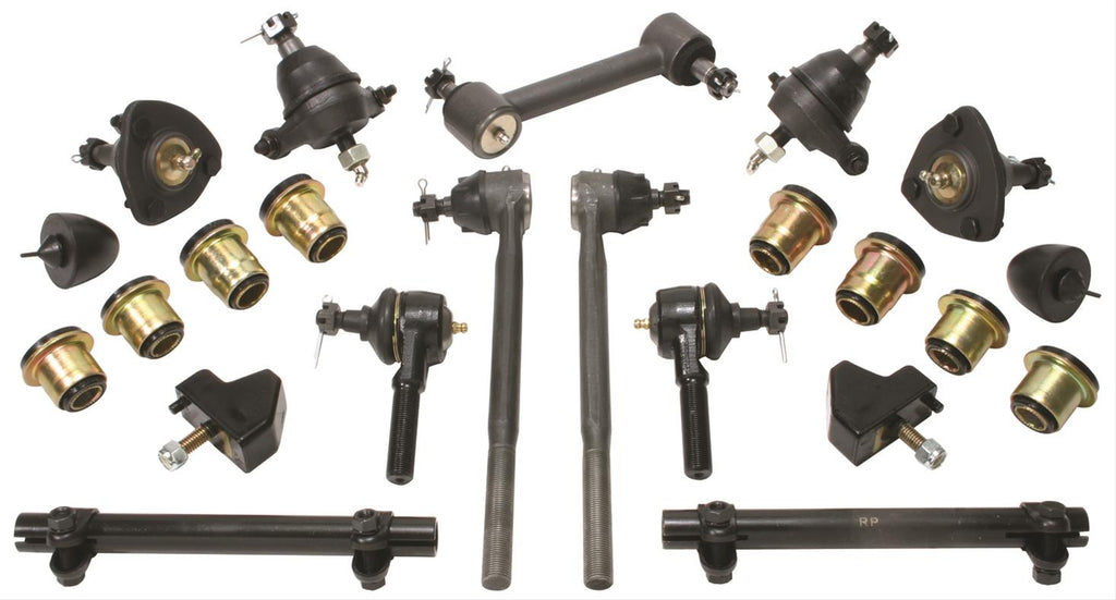 Classic Performance Polyplus front-end kits are an upgrade for worn-out stock rubber components. The ultimate in efficiency, they offer increased durability and outstanding performance. POLYPLUS graphite bushings combine polyurethane with the superior lubricating qualities of graphite for a smooth, quiet operation. Polyplus products withstand the abusive environmental elements that your vehicle encounters on a daily basis. All kits are vehicle-specific; check the applications for the package which best suits your needs. They include upper and lower ball joints, outer tie rod ends, control arm bushings, and bump stops. Sway bar bushings are sold separately. The complete kits also include inner tie rod ends, tie rod adjusting sleeves, and idler arm bushings.Brand: Classic Performance