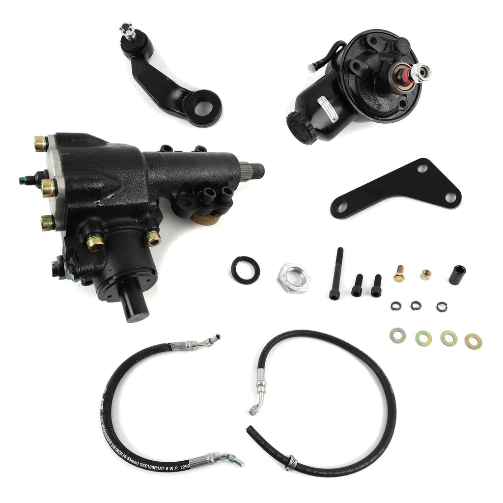 Notes: Gear box utilizes a 3/4 in.-DD type input. Modifications may be required depending on model year (see Applications listing for details). Designed for use with small block Chevrolet engines. Includes 400 Series steering box, pump, brackets and hoses.