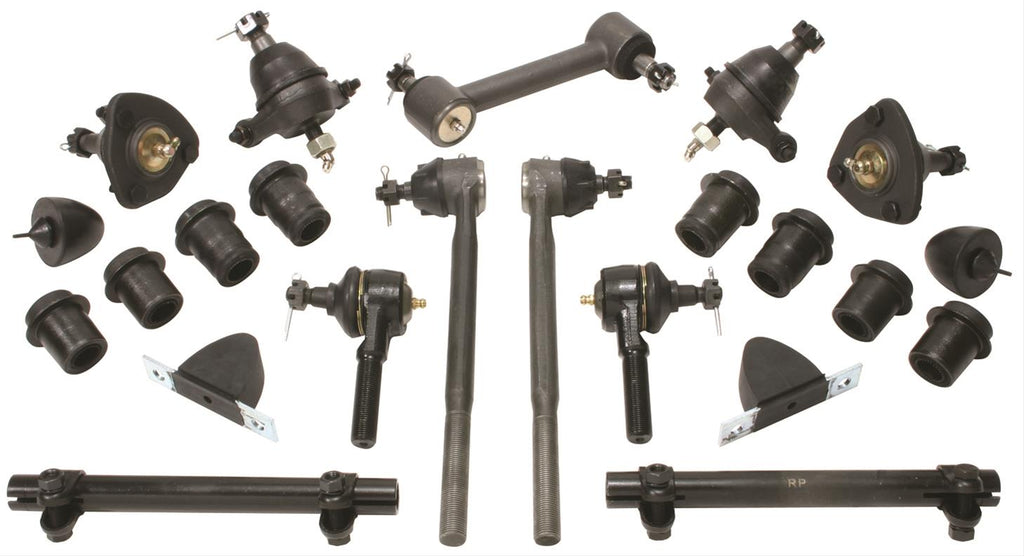 Don't overlook the front-end when rebuilding your classic vehicle; replace old worn-out bushings, ball joints, sleeves, and tie rod ends. These Classic Performance rubber front-end kits make it possible to achieve better-than-new performance for a modest price. Two types of kits are available for you to choose from. All rubber front-end kits include upper and lower ball joints, outer tie rod ends, control arm bushings, and strut rod bushings. End links sold separately. Complete rubber front-end kits also include inner tie rod ends, adjusting sleeves and idler arms. Order the kit recommended for your vehicle.Brand: Classic Performance