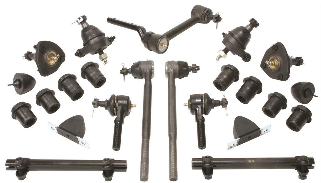 Don't overlook the front-end when rebuilding your classic vehicle; replace old worn-out bushings, ball joints, sleeves, and tie rod ends. These Classic Performance rubber front-end kits make it possible to achieve better-than-new performance for a modest price. Two types of kits are available for you to choose from. All rubber front-end kits include upper and lower ball joints, outer tie rod ends, control arm bushings, and strut rod bushings. End links sold separately. Complete rubber front-end kits also include inner tie rod ends, adjusting sleeves and idler arms. Order the kit recommended for your vehicle.Brand: Classic Performance