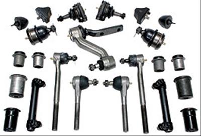 Don't overlook the front-end when rebuilding your classic vehicle; replace old worn-out bushings, ball joints, sleeves, and tie rod ends. These Classic Performance rubber front-end kits make it possible to achieve better-than-new performance for a modest price. Two types of kits are available for you to choose from. All rubber front-end kits include upper and lower ball joints, outer tie rod ends, control arm bushings, and strut rod bushings. End links sold separately. Complete rubber front-end kits also include inner tie rod ends, adjusting sleeves and idler arms. Order the kit recommended for your vehicle.Brand: Classic Performance